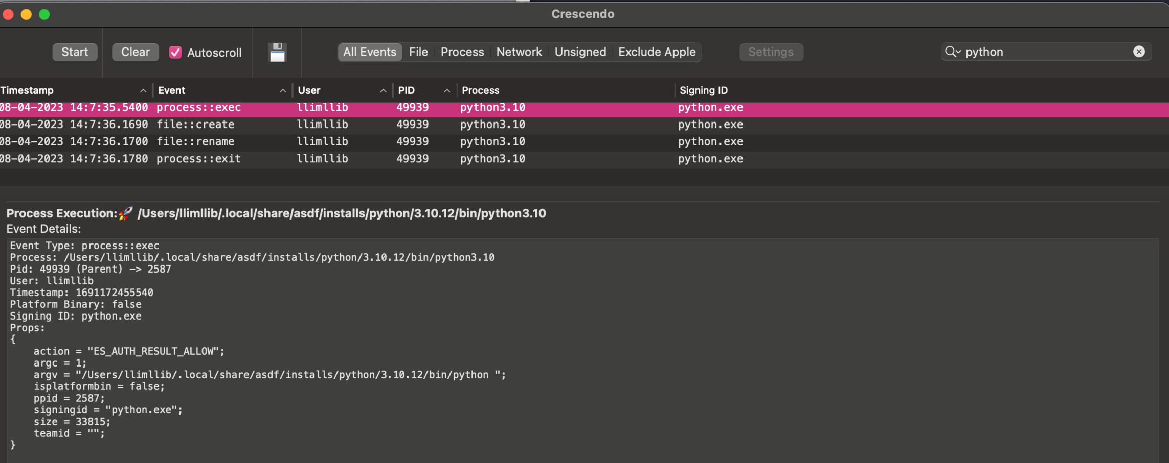 @b0rk oh I should have included that it gives you details on the events too, here's the python exec: